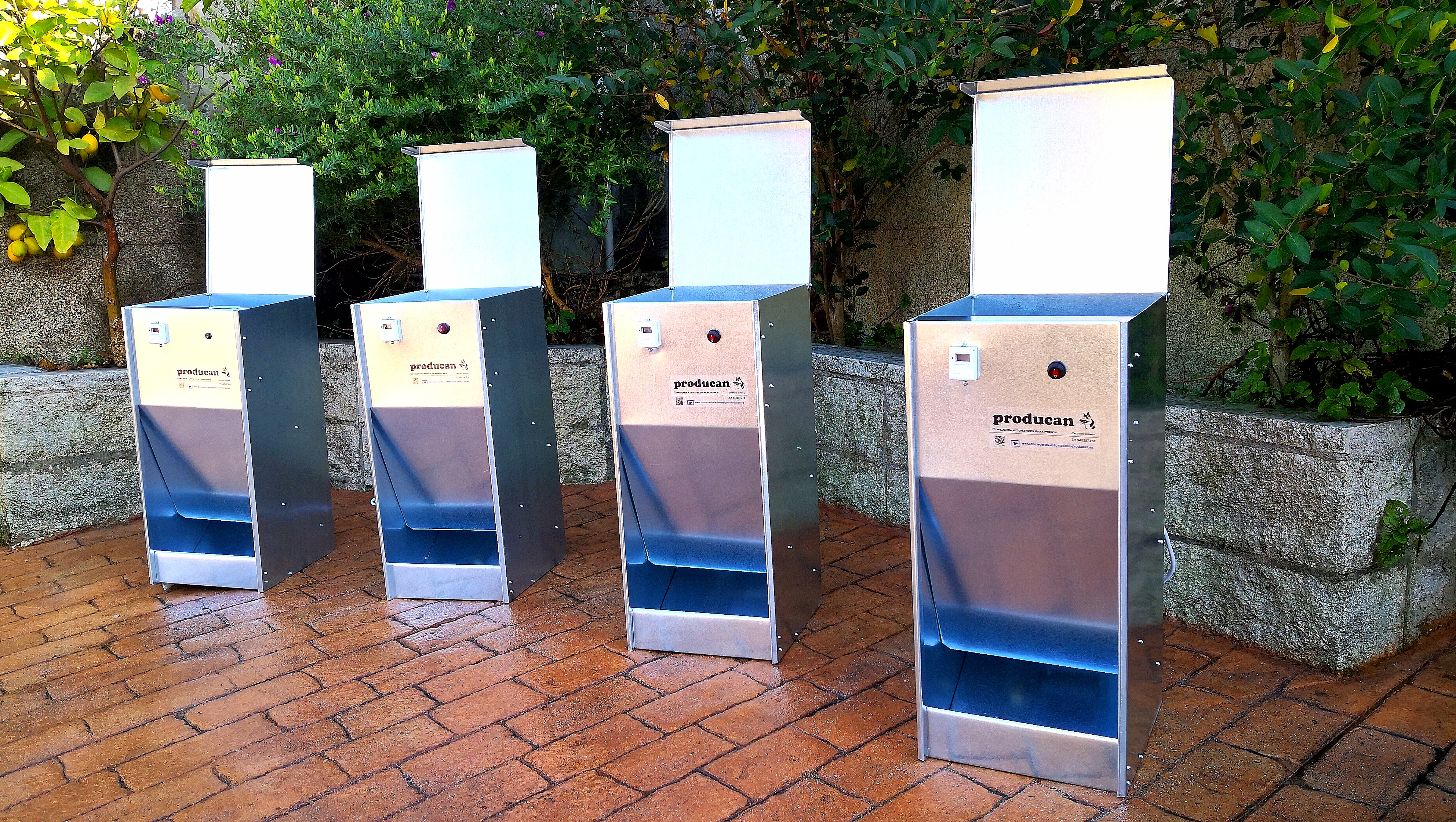 - Este modelo de comedero automático es el mas completo de nuestro catalogo, ya que funciona conectándolo a la red eléctrica o con su propia batería interna, trabajando autónomo ante un corte de energía,